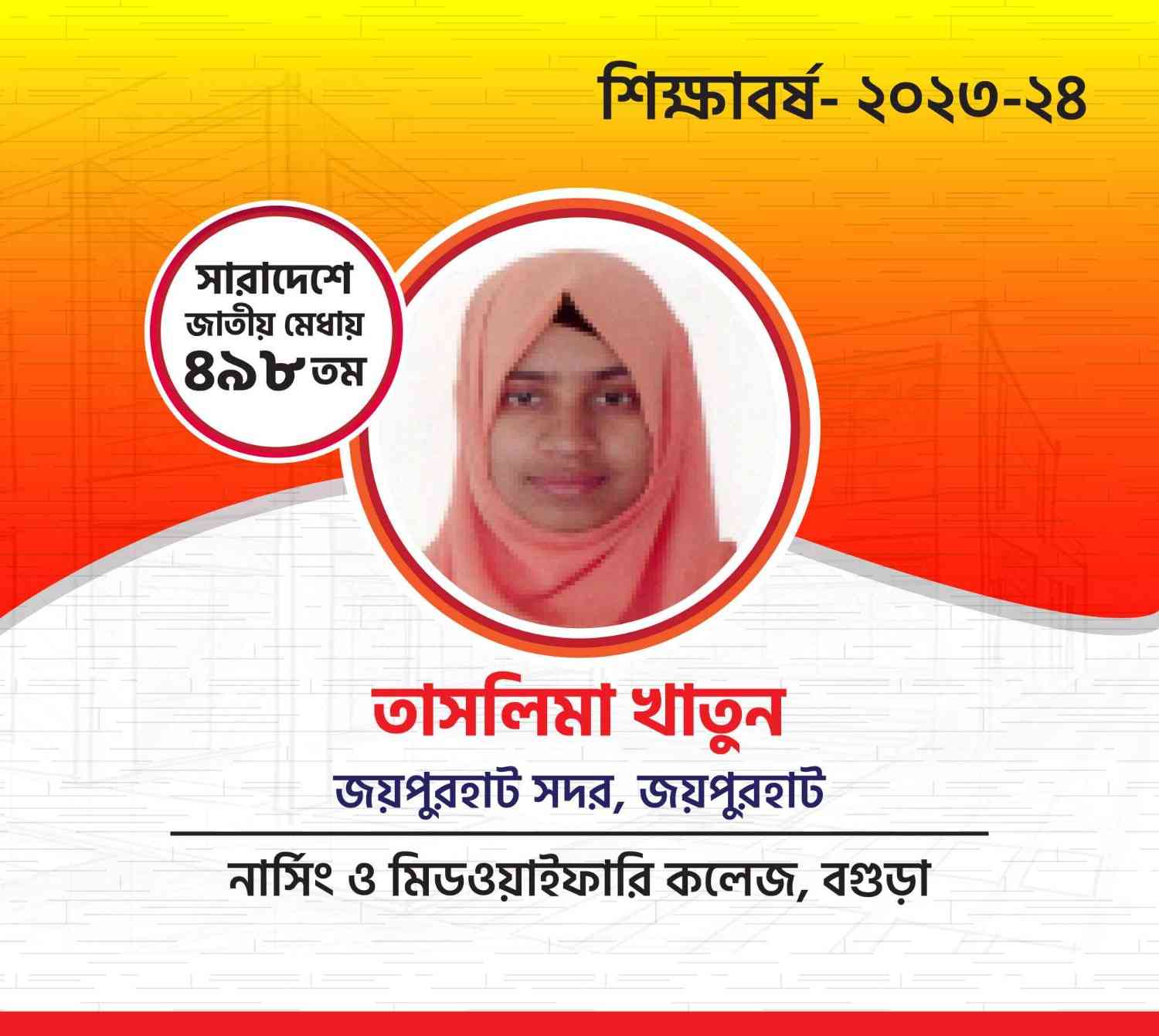 ২০২৩-২৪ শিক্ষাবর্ষে চান্সপ্রাপ্ত শিক্ষার্থীদের তালিকা